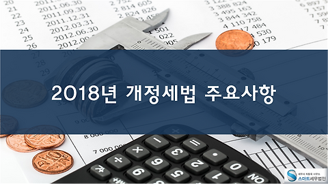 안녕하세요.시흥세무서 옆에 위치한 "스마트세무법인 (시흥지점)" 입니다. 오늘은 2018년 세법개정안 중 주요사항들에 대해서 검토해 보고자 합니다. ※ 법인세 1. 법인세율 개정내용 및 효과□ (개정내용) 과표 2천억 초과 구간 법인세율 22 → 25%과 표현 행개정안0∼2억10%(좌 동)2∼200억20%(좌 동)200∼3,000억22%(좌 동)3,000억 초과25% 2. 고용증대세제 신설□ 고용창출투자세액공제와 청년고용증대세제를 통합한 고용증대세제를 신설함. 고용증대세제는 투자가 없어도, 고용증가시 세액공제 적용● (요건) 직전 과세연도 대비 상시근로자 수가 증가할 것● (기간) 대기업 1년, 중소․중견기업 2년 (고용인원 유지 시, 다음 연도에도 세액공제 적용)● (중복적용) 중소기업 특별세액감면, ..